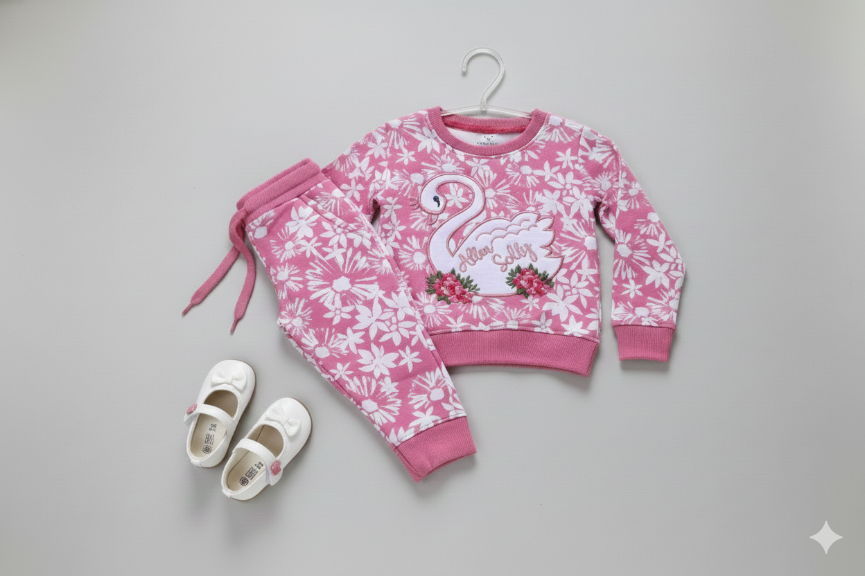 Brighten up the frostiest days with this stunning pink and white floral set! Featuring a beautifully detailed swan patch with delicate floral embroidery, this two-piece outfit is as cozy as it is charming. The heavyweight fleece fabric ensures she stays warm during winter outings, while the all-over botanical print adds a touch of spring to her cold-weather wardrobe.