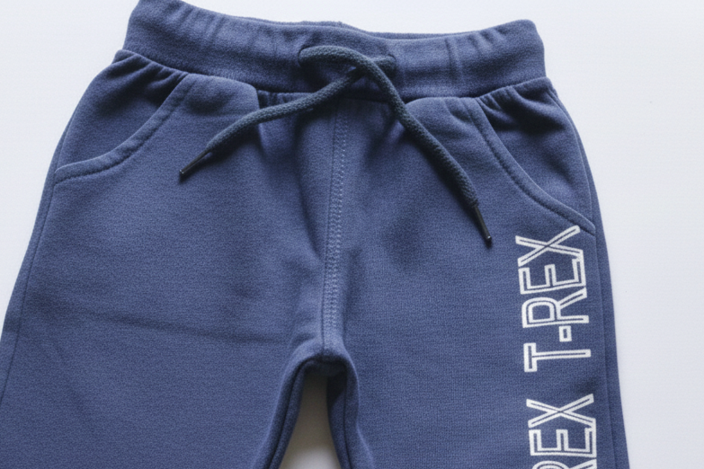 Get ready for a prehistoric winter adventure! This two-piece set features a mighty T-Rex graphic that wraps around the side of a cozy cream and icy-blue sweatshirt. Paired with coordinating navy joggers featuring "T-REX" varsity lettering, this outfit is designed to keep your little explorer warm from the playground to the living room fort.