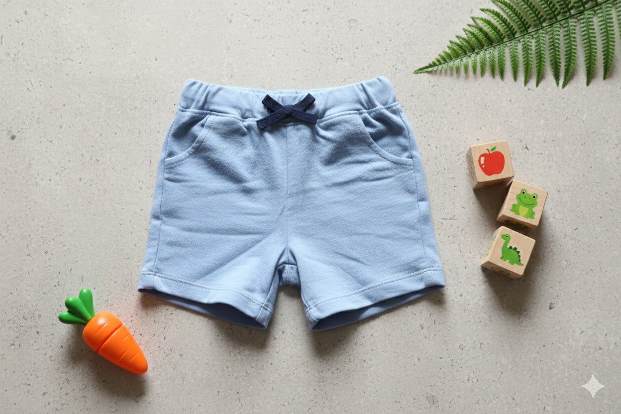✔ Easy Styling: Navy “Future Beauty” tee with light blue shorts, elastic waist, and bow
